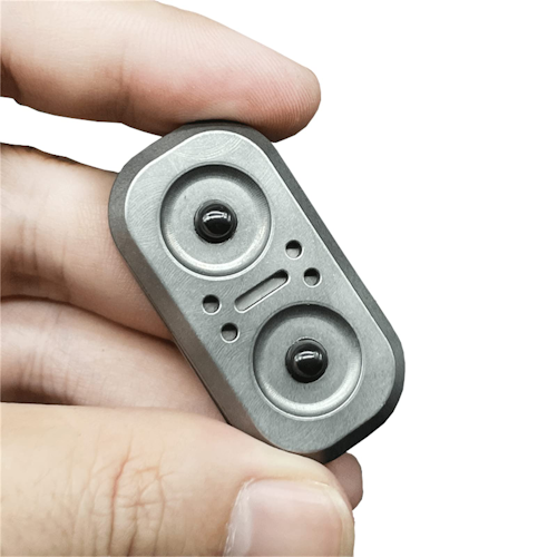 These satin metal magnetic "Owl" sliders have two halves inset with magnets and a central ball bearing, that let it slide, click and spin! They have a really nice tactile movement as the magnets work against each other. The two halves not only slide up and down length-ways, but also rotate and at one end it is designed to spin freely. All the movements have a good positive magnetic resistance and most have a nice clicky feel.