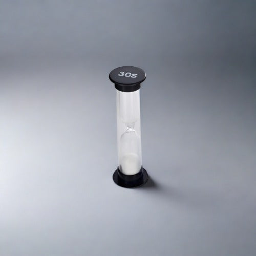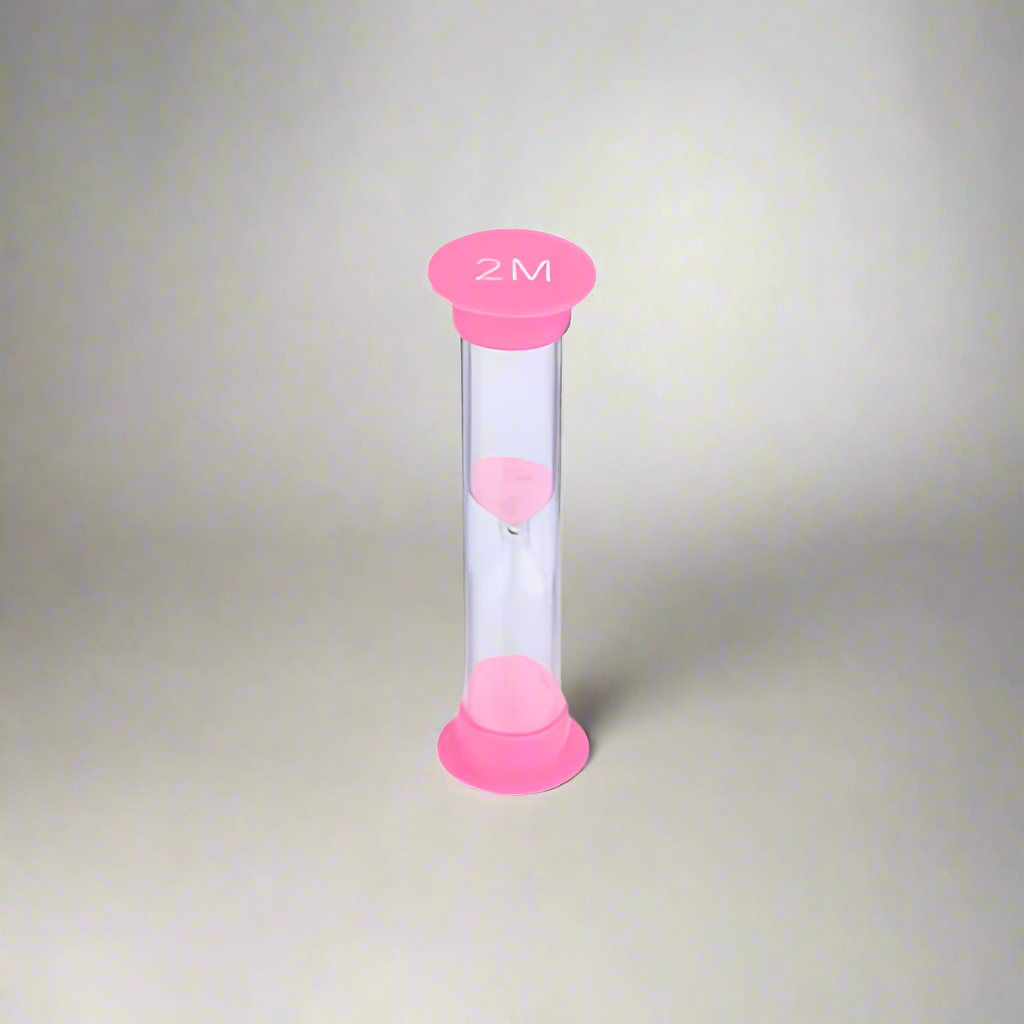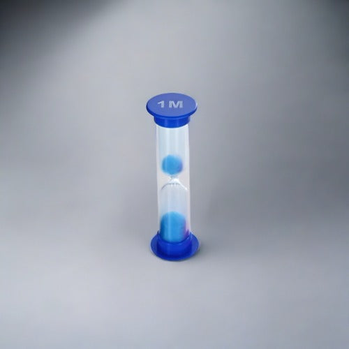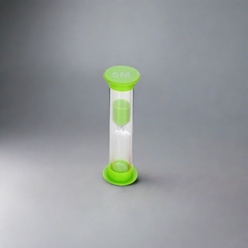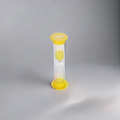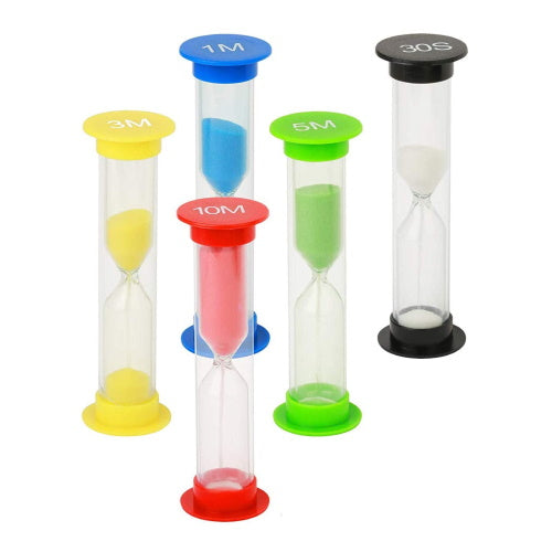 These 9 cm hourglass shaped sand timers are made of a hard perpex inner with a plastic outer shell in case of mishaps. They are colour coded and have approximate times embossed on the lid of each.