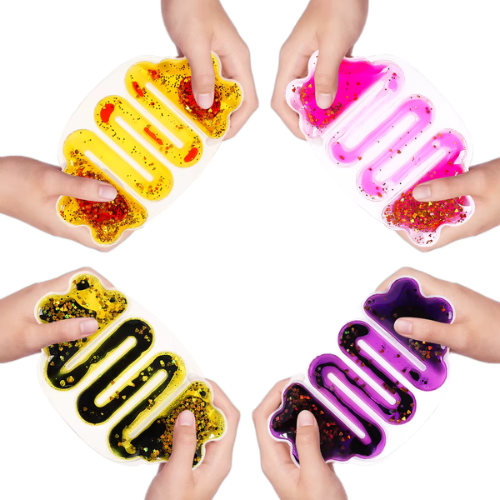 - Function: Squeeze, twist, or press the flexible tube to move liquid and glitter through a maze‑like channel. This tactile and visual activity provides sensory input that can ease anxiety, reduce stress, and support focus for individuals with autism or ADHD.